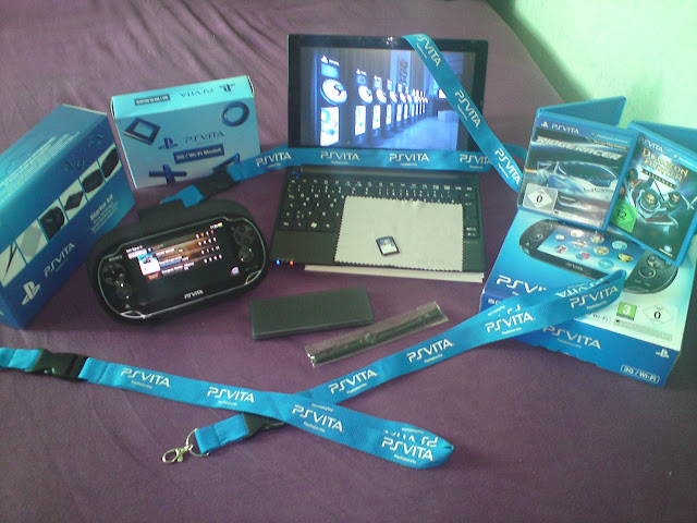 Und nein, die auf dem Video / Bild zu sehenden Schlüsselbänder gabs nicht mit dazu, diese stammen aus der GC 2011 in Köln wo ich die Vita das erste Mal Probe zockte.