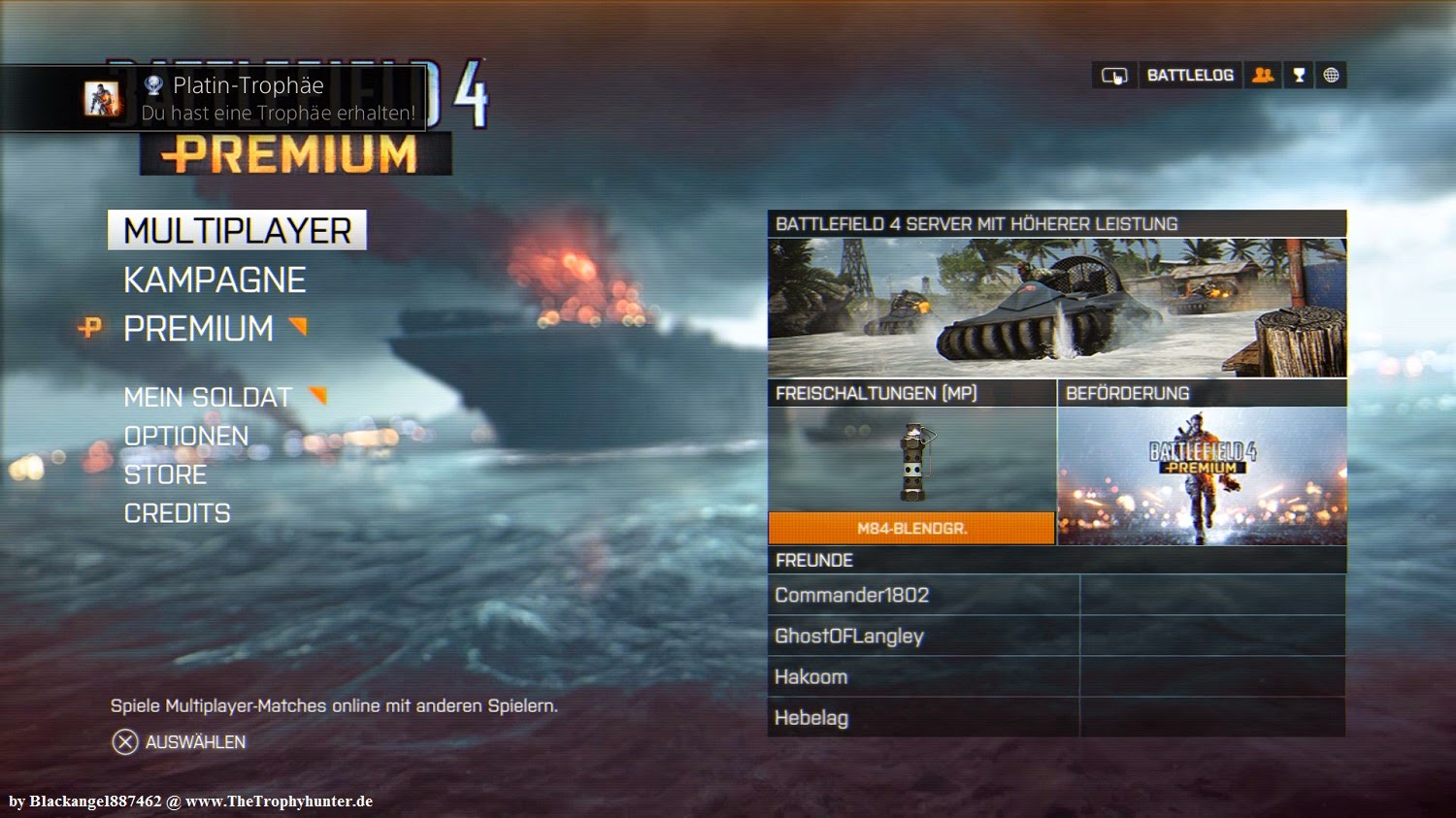 Dazu hier gleich nochmal der Link zu meiner ersten BF4 Platin: Platinum #478 - Battlefield 4 (PS3)